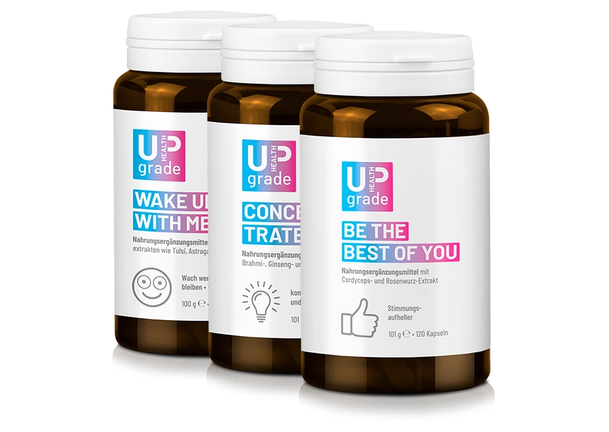 Und wenn Dir mal die Leichtigkeit fehlt, bringt BE THE BEST OF YOU Deine Stimmung wieder ins Gleichgewicht. Drei starke Begleiter von HEALTH UPGRADE, entwickelt für Körper und Kopf – ganz natürlich, ganz Du.